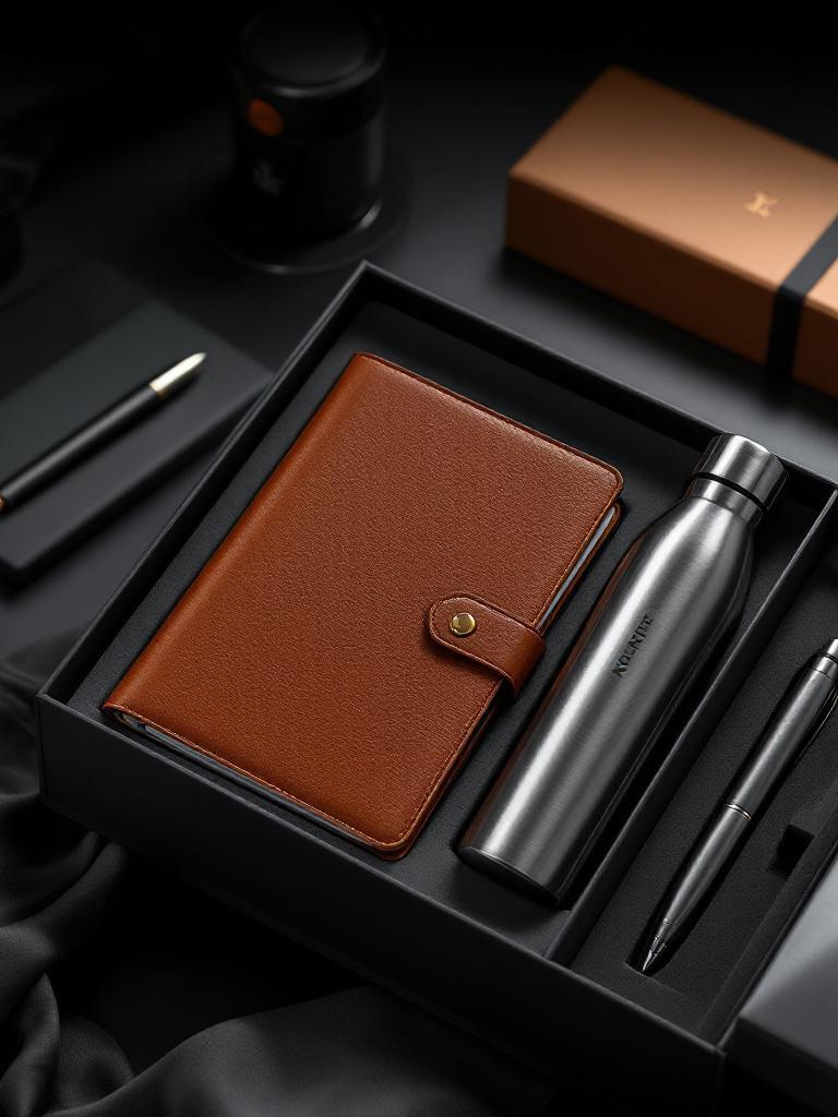 A premium set featuring a stylish diary, sleek pen, and aluminum bottle, all customizable with your company logo. Perfect for professional gifting, this kit combines elegance and practicality, leaving a lasting impression on clients, partners, or employees this Dashain.